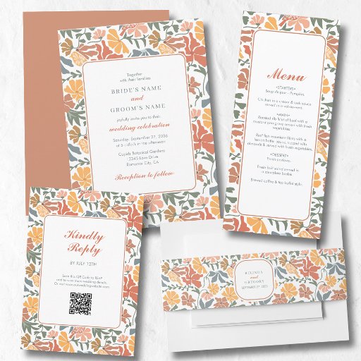 Abstracte Bloemen & Vogels Mid Century Modern Wedd Menu