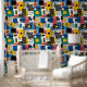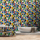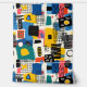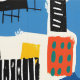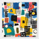 Dit kunstwerk heeft een dynamische en eclectische compositie van abstracte vormen, patronen en texturen, samengevoegd in een collage-achtige opstelling. Het ontwerp bevat gedurfde kleuren zoals blauw, geel, rood en zwart, waarbij elk element varieert in grootte en vorm. Handgetekende lijnen, rasters en penseelstreken voegen een speels en spontaan gevoel toe aan het stuk, terwijl de onregelmatige opstelling van de vormen creëer een gevoel van beweging en energie geeft. De combinatie van geometrische vormen en uit de vrije hand getekende tekens geeft het kunstwerk een moderne, artistieke sfeer.