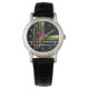 Een regenboog van kleuren maakt dit interessante abstracte ontwerp samen dat uit multicolored snijdende lijnen bestaat en een zwarte achtergrond kruist. Roze en groen zijn de dominante kleuren en gaan hier goed samen. Het gezicht van de klok heeft de witte aantallen van de kunstdecostijl.