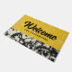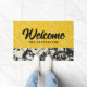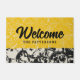De Abstracte Gele Doormats van de Naam van de Zwarte Familie van de Middeleeuwse Middeleeuwse van de Zwarte Familie kenmerkt een abstract patroon in geel, wit, grijs en zwart met de tekst "Onthaal"in de moderne kalligrafische manuscripttypografie en gepersonaliseerd met uw familienaam. Behoorlijk voor huisverwarming, kerstcadeautjes, verjaardagsgeschenken en buitenbedden. Ontworpen door © Evco Studio www.zazzle.com/store/evcostudio