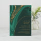 Dit trouwontwerp, met het abstracte patroon van stromende rimpels en aderen van glitterend goud, brengt gesteentjes en mousserende gememen in gedachten. Het juweelkleurpalet in de schaduw van smaragdgroen voegt aan de oproep toe. De hier getoonde uitnodiging van het Dinner van de repetitie heeft al hierboven met een sjabloon om uw gebeurtenisdetails gemakkelijk toe te voegen. Zoek ID903 om andere kleurenkeuzen en coördinerende stukken voor dit unieke bruiloft collectie te zien.