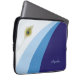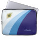 Moderne abstracte golven in blauwe tinten en een pauw-veer laptophoes. De naam kan worden gepersonaliseerd.