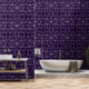 Update het uiterlijk van uw muren met behang. Dit getextureerde vinylbehang heeft een donkergrijze bladprint op een paarse achtergrond. Dit abstracte bladpatroon zal een aanvulling zijn op een modern huis of kantoor.