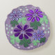 Abstracte Groene en Paarse Klaver & Bloemdoodle Rond Kussen