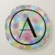 Monogram rond kussen met een abstract ontwerp dat heldere, kleurrijke lichten weergeeft. Fun design dat lijkt op iets dat je kunt zien als je door een caleidoscoop kijkt. Pas uw initiaal aan.