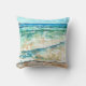 Abstract doorschijnend Sierkussen. Ideaal voor de hut, het huismeer of de oceaanzijstrandhuur. Het heeft een mooie kustlijn, waterschilderingen in blues, theels en crèmes. Ontwerp door Jenn's emporium.
