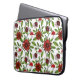 abstracte rode bloemen en groene bladeren op witte laptop sleeve