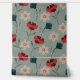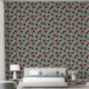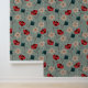Abstracte rode en groene bloemen op grijs behang
