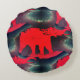 Abstracte rode tekening met zeer bijtende werking rond kussen