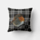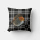 Modern kussen met abstracte Robin vogelfoto kunst op zwart witte buffalo plaid. U kunt uw eigen monogram toevoegen om te personaliseren.