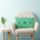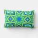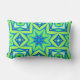 Lumbarkussen in een geometrisch abstract sterrenpatroon In tinten groen, cerulean blauw en turquoise, voorzien van diepe blauwe tinten
