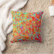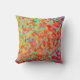 Abstracte herfstbladeren op het blauwgroen zijn een origineel schilderij dat op een kussen is geplaatst. rode, oranje en gele bladeren die over de blauwgroen achtergrond stromen. Levendige kleuren door het gebruik van de tegenovergestelde kleur.
