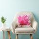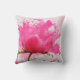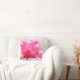 bloem met roze bladen die in roze verfsplatters op een grote witte muur achter ontploffen. Grote druppels verf worden over de hele linie besproeid. Koel modern abstract hedendaags design.