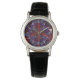 Het gezicht van deze ontwerperhorloge is een vredesteken omringd door een abstracte achtergrond, gedomineerd door rood en blauw. Het is een beetje grappig en tegelijkertijd ook erg lelijk. Wacht even? Is dat mogelijk? Ja. Ook beschikbaar in mannen, unisex, en de stijlen van kinderen.