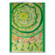 Een van mijn vroege mandala's helemaal in waterverf. Een zachte achtergrondlaag, met roze, groene en gele afbeeldingen toegevoegd.
