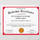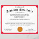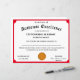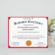 Het ontwerp is voorzien van een rode trim met afbeelding van een gouden medaille in het midden. De titel wordt weergegeven in een traditioneel lettertype voor een certificaat. tekst. Beschikbare trim kleuren zijn rood, goud, blauw en groen.