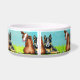 Tekenen van inkt en potlood van een Australische Rundvee-hond die vol zit met een bruin en wit kalf. Kunst door Andie.