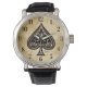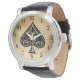 aas van schoppenontwerp op verouderde papieren stijl achtergrond. Klassieke zwarte nummering. Drie handen. Hoge kwaliteit gebouwd om lang mee te gaan. Technische details zijn onder meer: - 3-hands analoog Japan Quartz® - Waterbestendigheid: Tot 3 ATM (98,4 ft) - 1 jaar beperkte garantie van fabrikanten - Inclusief batterij
