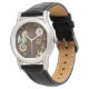 Achtergrond van hout met mechanische zeepaardjes horloge