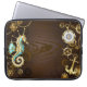 Achtergrond van hout met mechanische zeepaardjes laptop sleeve