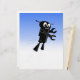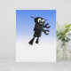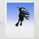 Speelgoed vliegende robot in de blauwe lucht. Oorspronkelijk tekenfilm. Digitale tekening.