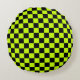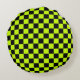 Acid green black checkerboard pattern rond kussen