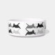 Schilderij van vier kattensilhouetten in zwart en grijs, vier keer afgedrukt op een schotel voor huisdieren, met een plaatsaanduiding om de naam van het huisdier toe te voegen. Eenvoudig de naam aanpassen op het formulier sjabloon.