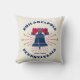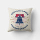 Voel je op je gemak met dit patriottische kussen. Het heeft een illustratie van een vrijheidsbel met een gedurfde, moderne, cirkelvormige tekst die luidt: Philadelphia, Pennsylvania, 1776 - 2026, in gouden, blauwe en rode kleuren op een lichtbeige achtergrond. Geweldig als cadeau of souvenir voor de viering van het 250-jarig bestaan van Amerika in 2026.