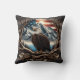 Een adelaar staat majestueus op een tak, met bergen en een Amerikaanse vlag op de achtergrond als de zon ondergaat over het meer.