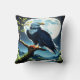 Een adelaar staat trots op een boomtak, verlicht door de gloed van een volle maan tegen een achtergrond van bergen en een sereen meer.