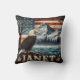 Een majestueuze adelaar ligt op een boomtak, met uitzicht op een levendig berglandschap versierd met Amerikaanse vlaggen en een stromende rivier eronder.