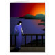 Vrouw en seizoensvolle zonsondergang. Gedaan in een stijl die sterk wordt beïnvloed door het Japanse en Chinese sumi-e-inktschilderij.