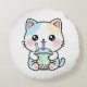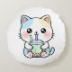 Adorable Cat with Drink – Throw Pillow Rond Kussen