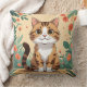 Adorable Tabby Cat in Blossom Garden Throw Pillow Kussen