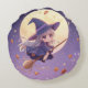 Adorable Witch Flying Over the Moon Round Pillow Rond Kussen