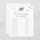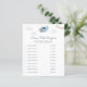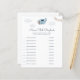 Blauw en tan vintage reis thema baby shower 'Name That Storybook' game sjabloon met een waterverf afbeelding van een schattig vliegtuig met een party slinger en wolken.