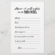 Een moderne en minimalistische Advice and Well Wishes kaart in zwart-wit. Laat je boodschap en advies achter voor de bruid en bruidegom met deze zoete kaarten. Ze komen overeen met ons assortiment bruiloft- en vrijgezellenfeest-spellen, zodat u een prachtig gecoördineerd evenement kunt creëer! Dit is een leuke activiteit voor een vrijgezellenfeest, verlovingsfeest, vrijgezellenfeest of huwelijksreceptie.