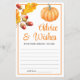 Vier liefde en gelach met ons Advies en Wens Herfst Pompoen Vrijgezellenfeest Spel! Met charmante herfstillustraties met pompoenen, bladeren en gezellige herfst tinten, voegt deze spelkaart seizoenswarmte toe aan uw vrijgezellenfeest terwijl u gasten de kans geeft om oprechte adviezen en goede wensen voor de aanstaande bruid te delen. Kenmerken: -Schattige herfst-thema ontwerp met pompoenen en rustieke details; -Ruimte voor gasten om persoonlijk advies en lieve wensen te schrijven; -Perfect aandenken voor de bruid om te koesteren na het douchen; Geweldig voor herfst vrijgezellenfeesten, oogst-thema feesten, of rustieke feesten Een mooie mix van sentiment en seizoensgebonden charme-maak uw vrijgezellenfeest gedenkwaardig met dit doordachte spel.