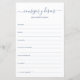 Deze eenvoudige, moderne, minimale, stoffige, blauwe handgeschreven script Consejos y Deseos-vellen zijn perfect voor je vrijgezellenfeest, repetitief diner of huwelijksgasten die het gelukkige paar invullen. Mensen zullen graag de herinneringen krijgen - ze maken het zo makkelijk om liefhebbende woorden van advies en welwillendheid achter te laten. Ze zullen nog jaren worden gekoesterd.