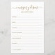 Deze eenvoudige, moderne, minimale, goudkleurige handgeschreven script Consejos y Deseos-vellen zijn perfect voor je vrijgezellenfeest, repetitief diner of huwelijksgasten die opvullen voor het gelukkige paar. Mensen zullen graag de herinneringen krijgen - ze maken het zo makkelijk om liefhebbende woorden van advies en welwillendheid achter te laten. Ze zullen nog jaren worden gekoesterd.