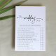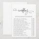 Voeg een vleugje plezier en opwinding toe aan uw bruiloft of vrijgezellenfeest met onze "The Wedding Shoe Game Kaart"! Dit boeiende spel is perfect voor het vieren van het paar, het samenbrengen van gasten voor een levendige en onvergetelijke ervaring. Belangrijkste kenmerken: Charmant ontwerp: Met een stijlvol en elegant ontwerp, deze spelkaart past bij elke bruiloft of vrijgezellenfeest decor. Afdrukken van hoge kwaliteit: deze speelkaarten zijn gedrukt op premium papier en bieden een luxueus gevoel en levendige kleuren, waardoor iedereen een heerlijke ervaring krijgt. Leuk en interactief: Gasten zullen genieten van deelname aan de Wedding Shoe Game, het opwekken van vreugde en lachen als ze leren leuke feiten over het paar. Duidelijke instructies: eenvoudig te volgen instructies zijn inbegrepen, waardoor het voor iedereen eenvoudig is om deel te nemen en te genieten van het spel. Waarom kies onze Kaart van het huwelijksspel? Tijdloos thema: het elegante ontwerp maakt dit spel een opvallende aanvulling op elke bruiloft of vrijgezellenfeest. Eenvoudig te spelen: Eenvoudige instructies zorgen ervoor dat iedereen kan meedoen aan de pret, waardoor het een hit wordt met gasten van alle leeftijden. Memorabele Keepsake: Deze prachtig ontworpen spelkaarten kunnen worden bewaard als gekoesterde herinneringen aan een speciale dag. Perfect voor elke bruiloft of Vrijgezellenfeest: Of u nu een traditioneel of modern feest plant, onze "The Wedding Shoe Game Kaart" is de ideale toevoeging. Het is een fantastische manier om gasten te vermaken en het evenement leuker te maken. Bestel vandaag nog jouw Wedding Game Kaart! Ons prachtige schoenenspel brengt vreugde en opwinding op uw bruiloft of vrijgezellenfeest. Bestel nu en laat de pret beginnen!