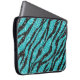 Afdruklaptophoes met turkooizen en zwarte zebra laptop sleeve