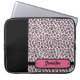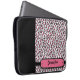 Deze cover van het sleeve van de laptopcomputer is voorzien van een zwarte, roze en witte cheetah-afdrukachtergrond met een stevig zwart oppervlak aan de linkerkant. Rechtonder kunt u eenvoudig jouw namen op het roze blok aanpassen.