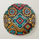 Het is een mooi kussen met het levenswiel er op. Je ziet dat het een afbeelding is van een tempeldeur of wand, het hout is herkenbaar. Het past geweldig in ons interieur: een beetje Zen, maar wel kleurig. Mooie kleuren, zoals op de afbeelding.