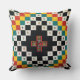 De kleine multicolored vierkantjes vormen een diamantvorm op de gedrukte stof.