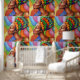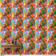 Gestileerde Afrikaanse vrouw portret, dragen en omgeven door heldere kleuren van de traditionele wax stof ontwerp. Originele handtekening Copyright BluedarkArt.