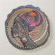 Afrikaanse vrouw profiel op een geweven mandje rond kussen