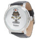 Een leuk horloge om je te geven als cadeau (of voor jezelf te kopen) voor je favoriete verpleegster. Zet de naam onder of iets wat je maar wilt. Als u geen naam wilt, schrap enkel de tekst in het vakje. Als u de doopvontstijl of de kleur wilt veranderen, kunt u dat ook doen. Klik op de knop Aanpassen. Dan benadruk de lijn van tekst op het recht. Klik op "F" voor lettertypestijlen en/of op de zwarte doos voor meer lettertypekleuren.
