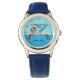 Dit leuke Afro-Amerikaanse meisjes gymnastiek horloge is voorzien van een zwarte turnster meisje staat in de voorkant van een balk. Ze draagt een rood maillot en glimlacht naar haar mooie blauwe monogram. Een cool kinderpolshorloge cadeau.