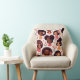Een mooi kussen met Afro-Amerikaanse meisjes met schattige afro puffs omringd door een mooie sakura bloemenprint op een witte achtergrond.